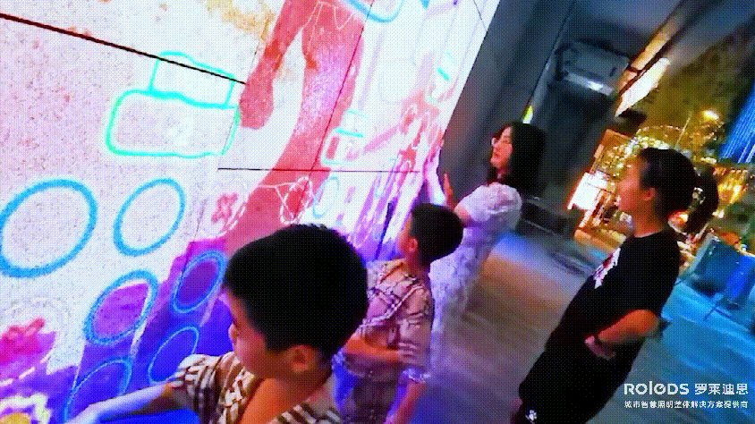 通过多媒体交互装置,将花园、鱼儿、沙滩、大海...搬到脚下,“缤纷海岸”“童趣踩鱼”“蜀绣扇面”“炫丽花海”主题互动区域,吸引市民游客和小朋友的欢喜。9个立面,9款体感小游戏,采用人体+雷达感应技术,塑造光随人动趣味十足。
