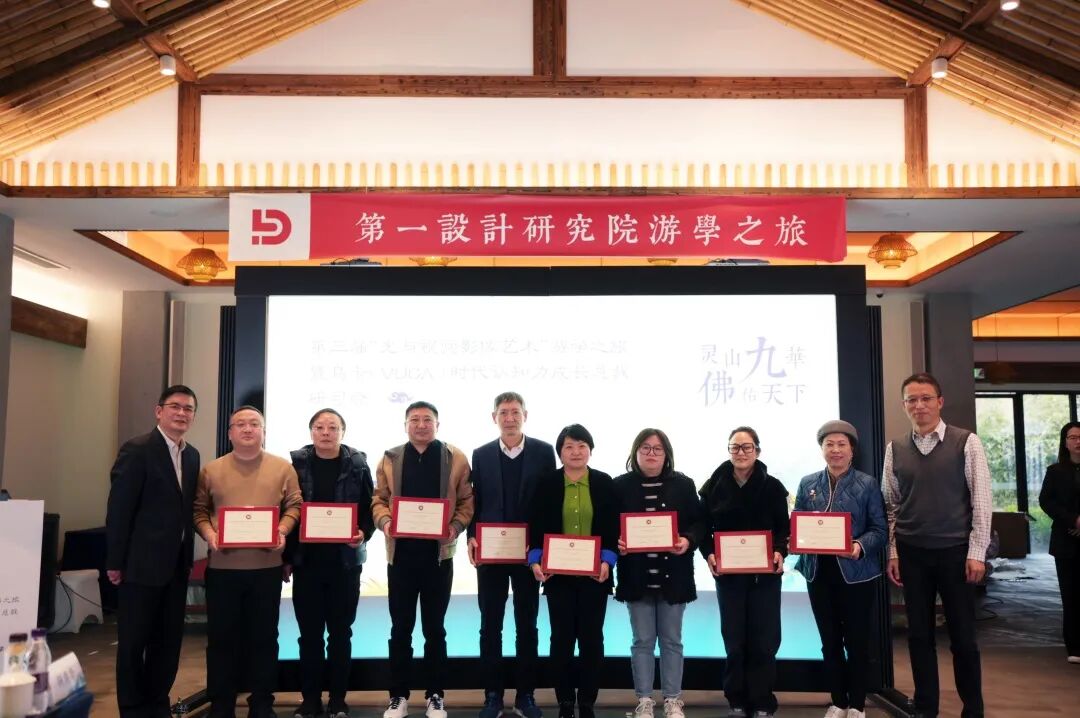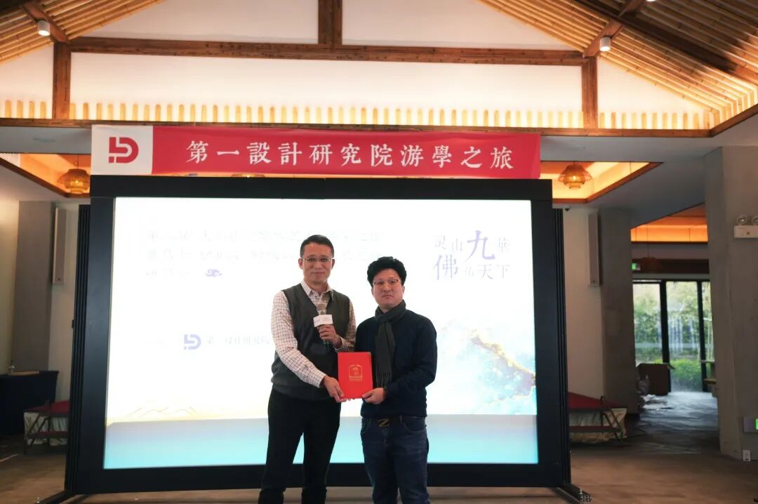 何清华教授与冯庆文先生为所有参与本次研讨会的嘉宾颁发第三届“光与视觉影像”游学之旅结业证书。